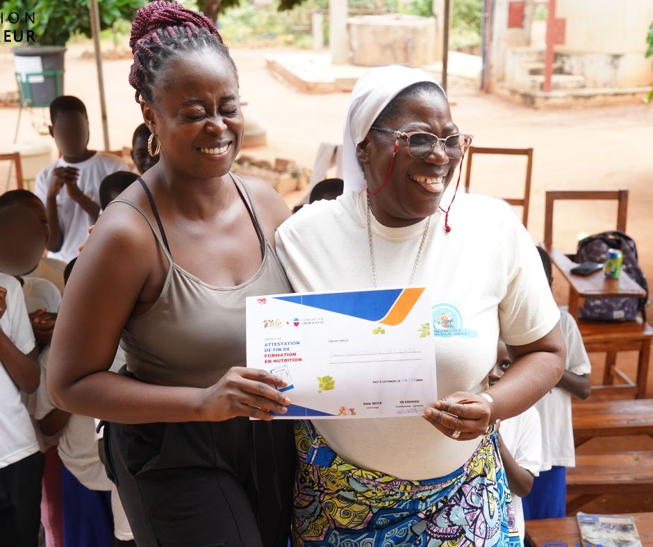 Livraison de vivres au centre Saints Innocents de Lobogo