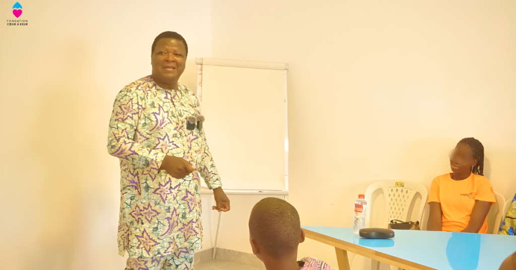 En juillet 2025, la Fondation Cœur à Keur a accueilli des sessions d’expression artistique et d’art oratoire animées par M. Raouf MAMA, conteur et formateur, professeur et auteur de renommée internationale. Ces ateliers ont offert aux enfants et aux jeunes participants un espace d’apprentissage et de découverte, où ils ont pu développer leur confiance en soi, leur créativité et leur capacité à s’exprimer en public. À travers des exercices pratiques et des mises en situation, les bénéficiaires ont appris à utiliser la parole et l’art comme moyens de valoriser leur identité et de partager leurs histoires.